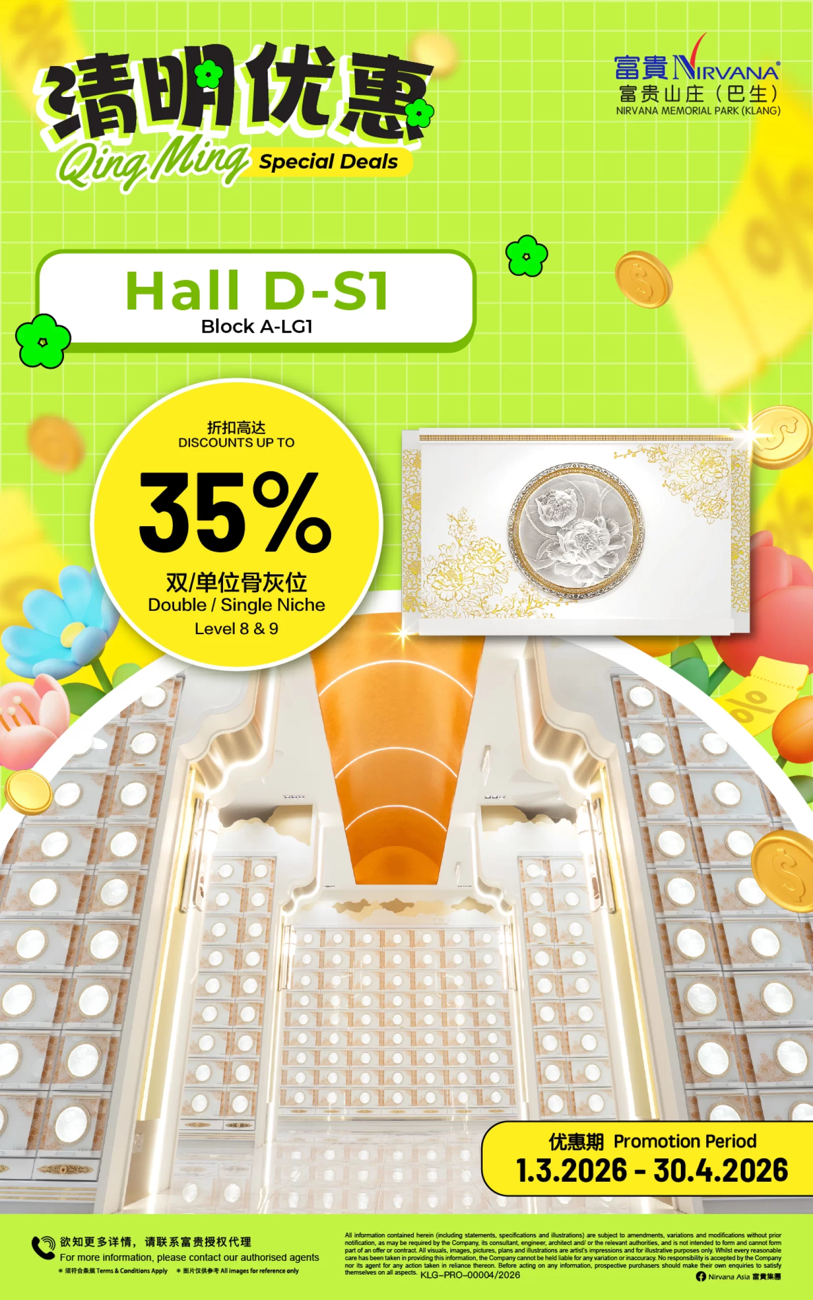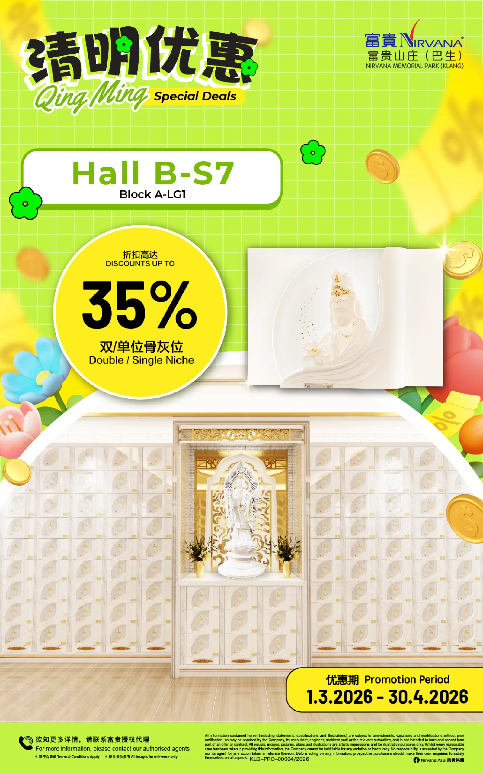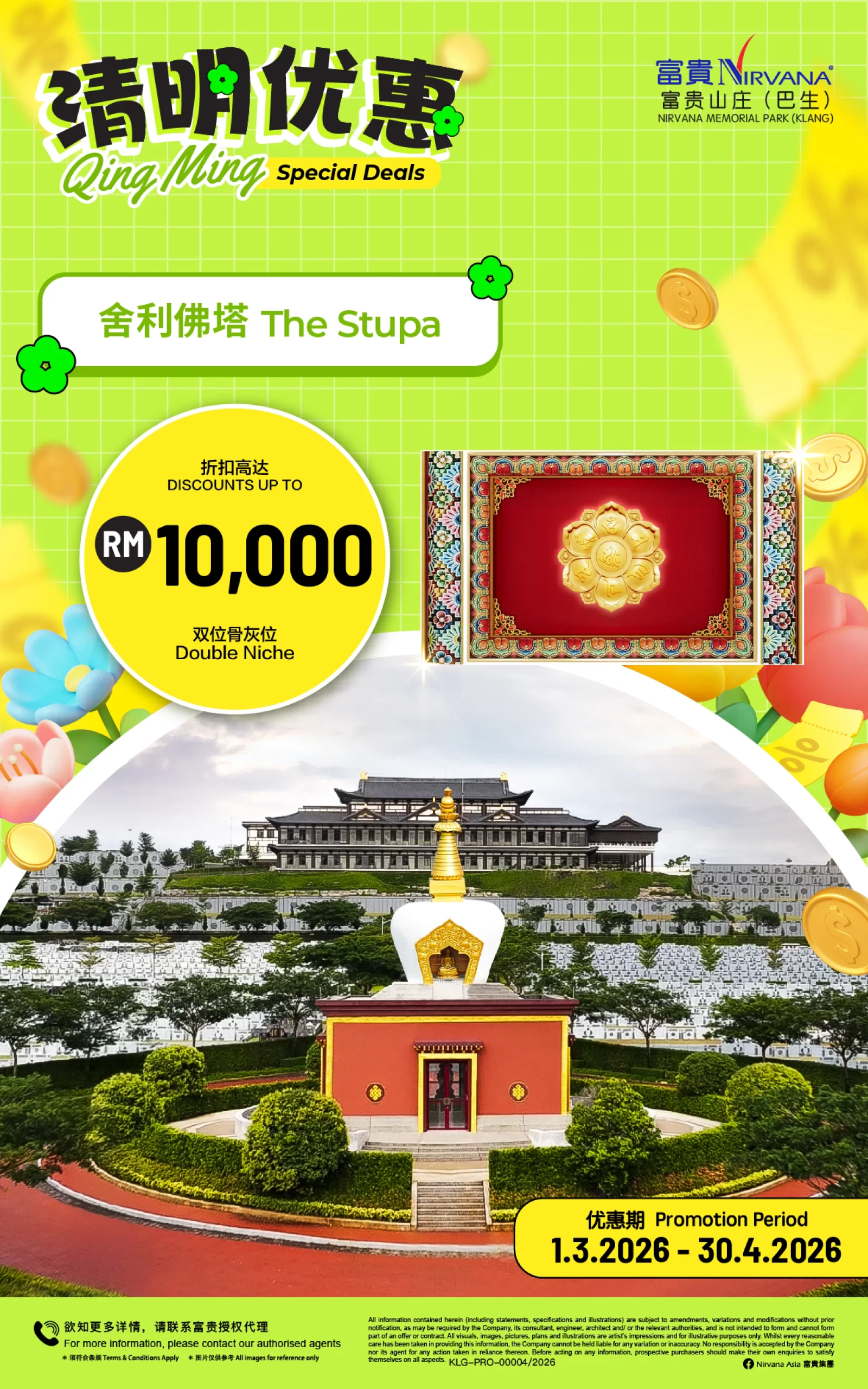 Nirvana Memorial Park (Klang) is located at a strategic location only a stone’s throw from Klang town centre and SETIA ALAM. Conveniently connected in terms of transport, it is easy for visitors to come to the memorial park to pay respects to their loved ones.